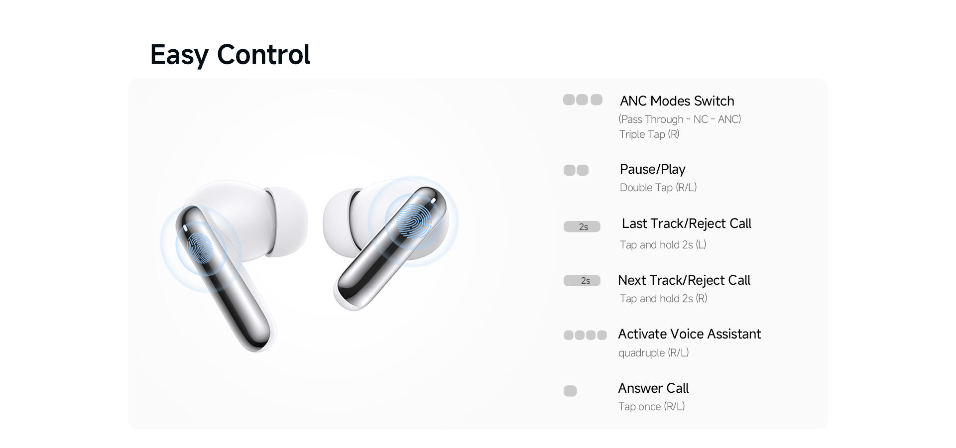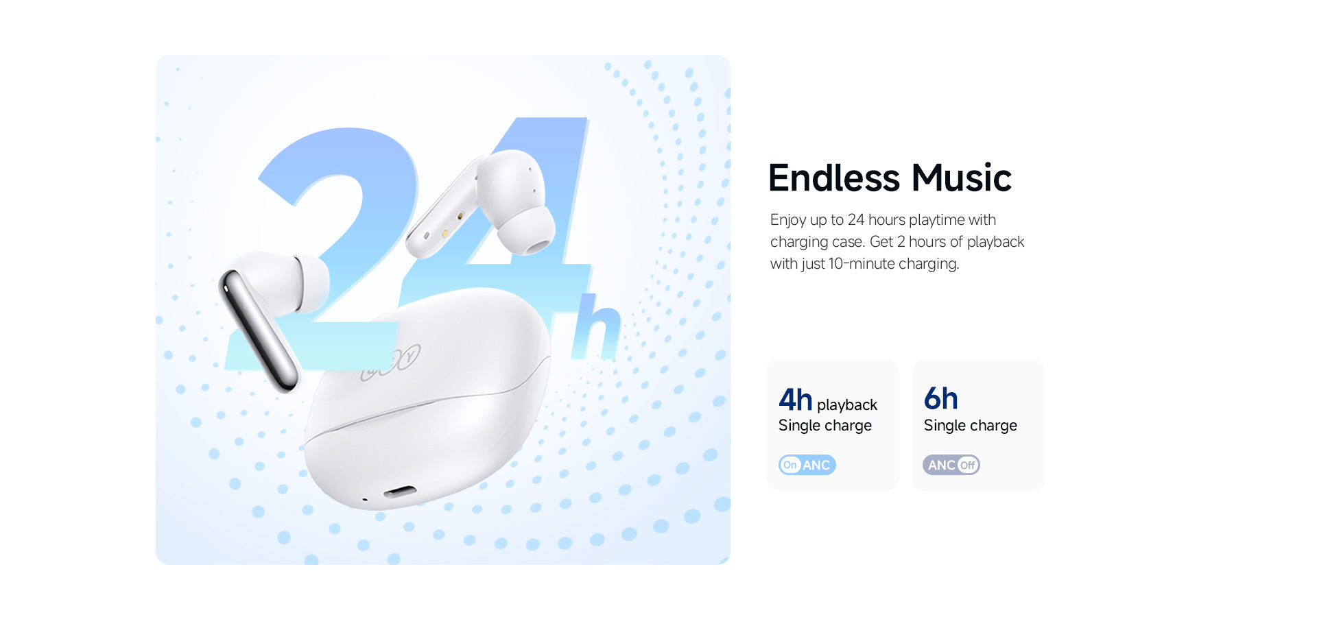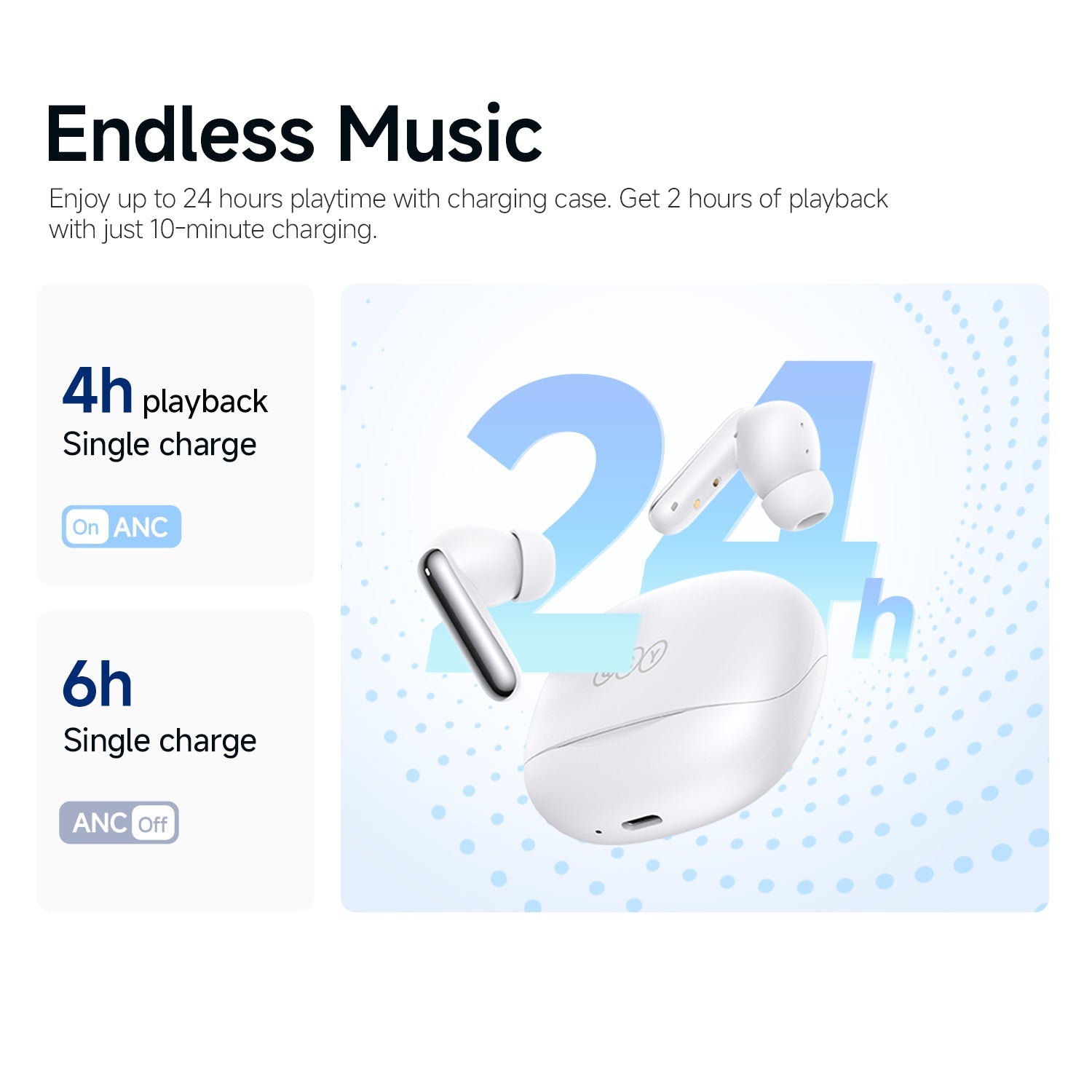 Duração individual de uso: 6H com ANC desligado, 4H com ANC ligado