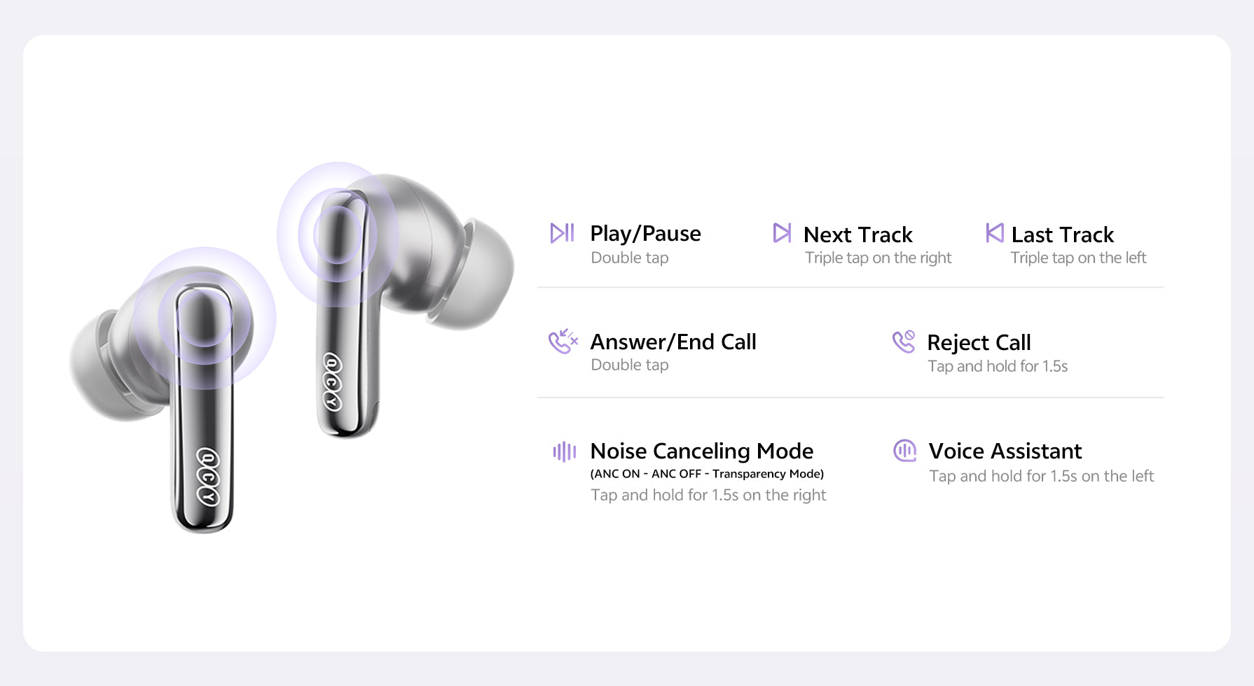 Tecnologia QCY PureSilenz™ & ANC Adaptativo