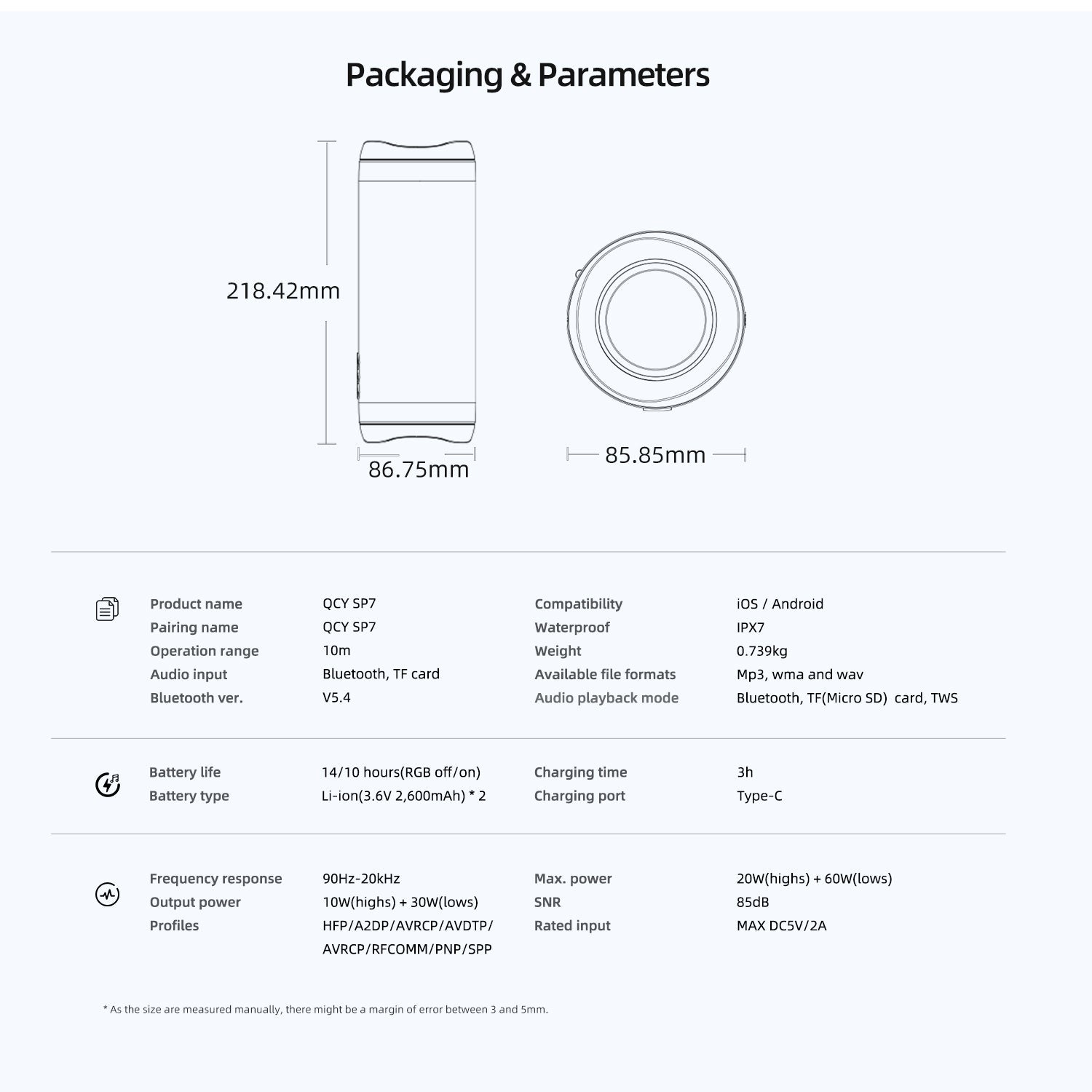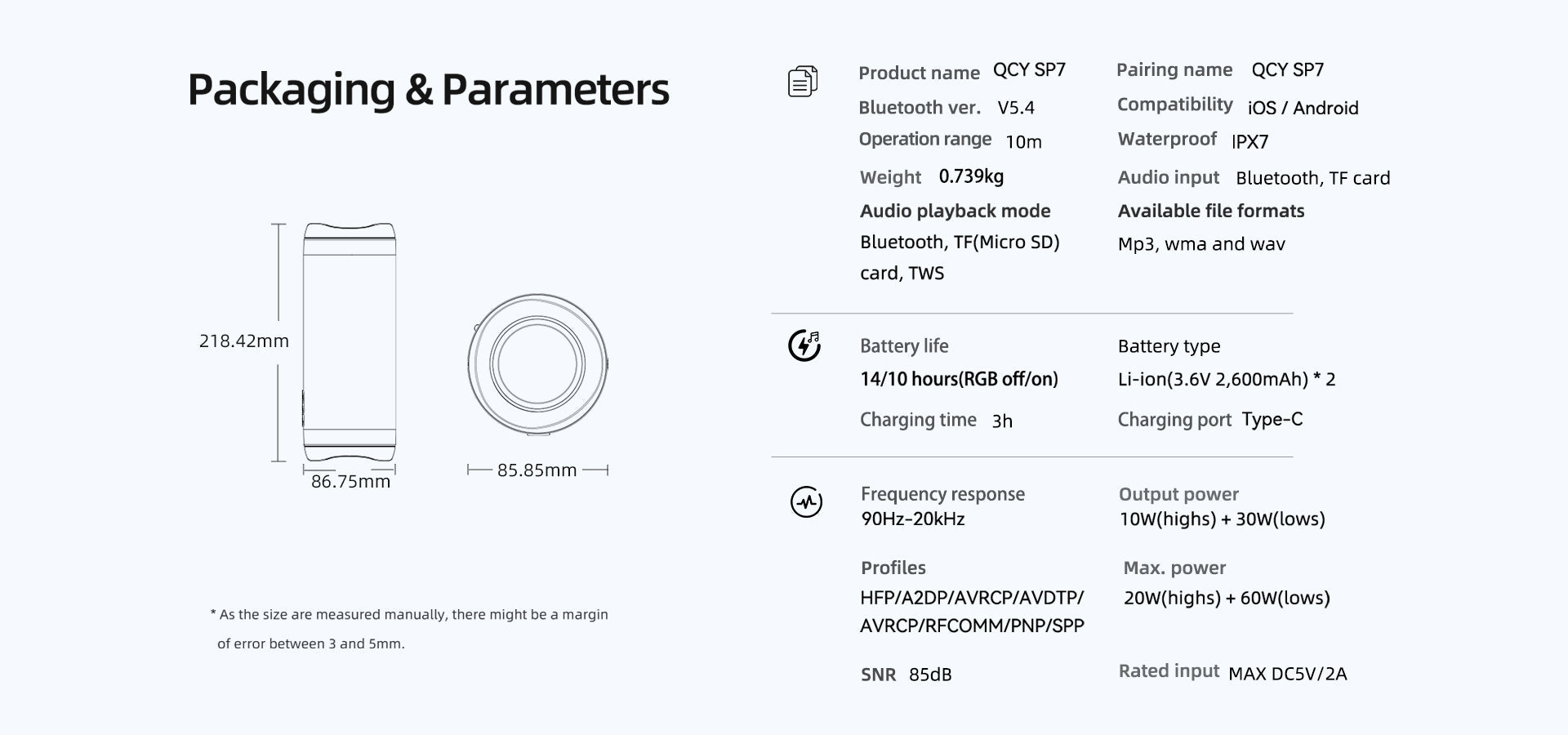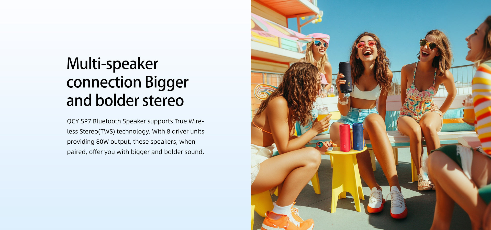 Graças às 4 unidades de altifalante incorporadas, este altifalante possui uma ampla gama de frequências de 90Hz a 20.000Hz e um som equilibrado. Oferece um som potente, para que possa desfrutar dos bons momentos durante toda a festa.